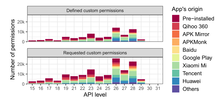 This paper presents the first large-scale empirical analysis of custom permissions in Android, revealing their widespread and undocumented use, and highlighting security and privacy risks stemming from privilege escalation and lack of user transparency.