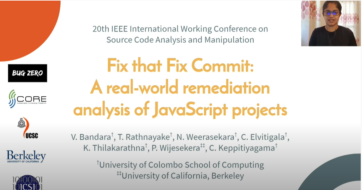 Previously, I was a research intern at SCoRe Lab in Sri Lanka and collaborated with the International Computer Science Institute (ICSI) at UC Berkeley. I have contributed to open-source tools like BugZero, Sequza, DNSTool-CLI, and CommunityDict. I am particularly interested in vulnerability remediation and understanding how developer practices influence the introduction and fixing of bugs in software.